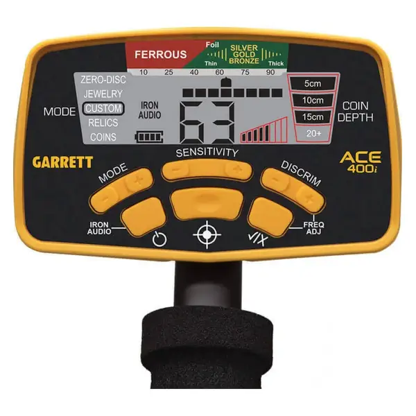 جهاز Garrett ACE 400i هو أحد أكثر أجهزة كشف الذهب والمعادن مبيعًا في العالم، يتميز بأداء قوي وسهولة استخدام مذهلة، ويُعد الخيار الأمثل لكل من الهواة والمحترفين في البحث عن الكنوز والعملات القديمة.